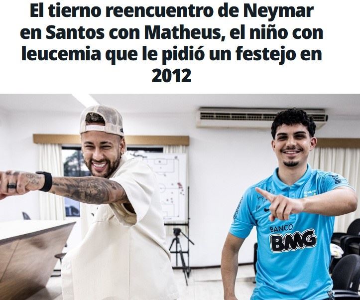奥莱报:内马尔在13年前曾为一患白血病球迷打气,近日两人重逢