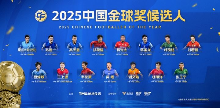 2025中国金球奖候选:张玉宁、蒋光太、韦世豪、谢文能、吴曦在列